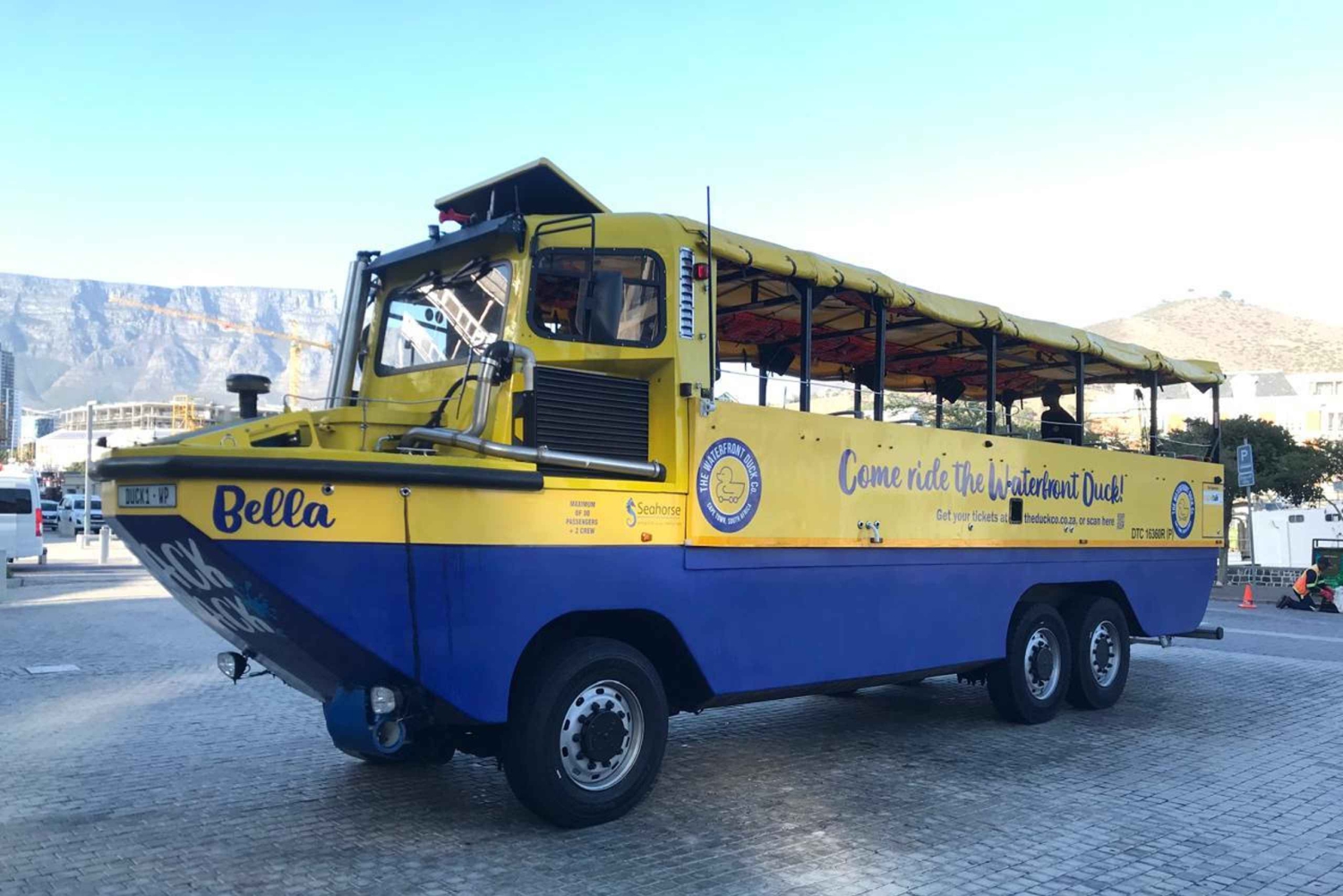 Tag derefter på Waterfront Duck Tour, et unikt land- og vandeventyr om bord på et amfibiekøretøj. Nyd en guidet tur gennem Cape Towns pulserende V&A Waterfront, og sejl derefter ind i havnen for at få en spektakulær udsigt over byens skyline og Taffelbjerget fra vandet.
