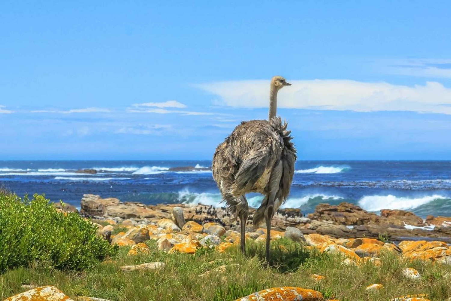 We continue through Kommetjie, Misty Cliffs and Scarborough. Then stop at the Ostrich Farm; accommodating 40 breeding birds, for a quick visit.