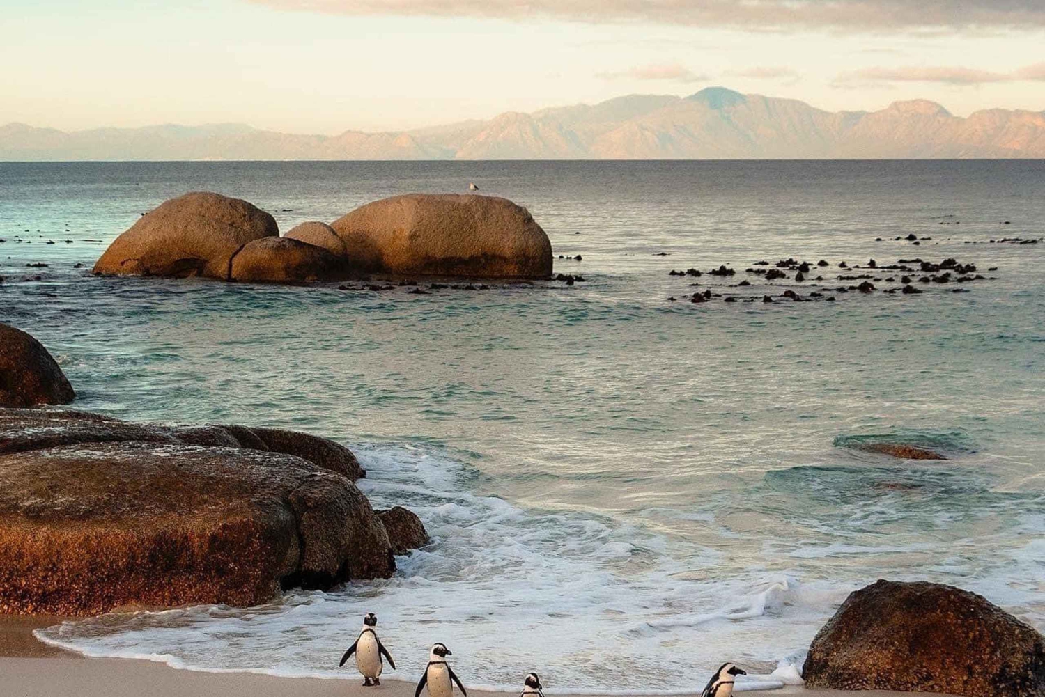 Se olisi hauska päivä, jonka aikana voit olla vuorovaikutuksessa ikioman Boulders Beachin afrikkalaisen pingviinikolonian kanssa. Huippuluokan ammattitaitoinen kuljettaja/opas kertoo tämän alueen historiasta, kun matkustatte ylellisissä ilmastoiduissa ajoneuvoissa, joissa on pullovettä.