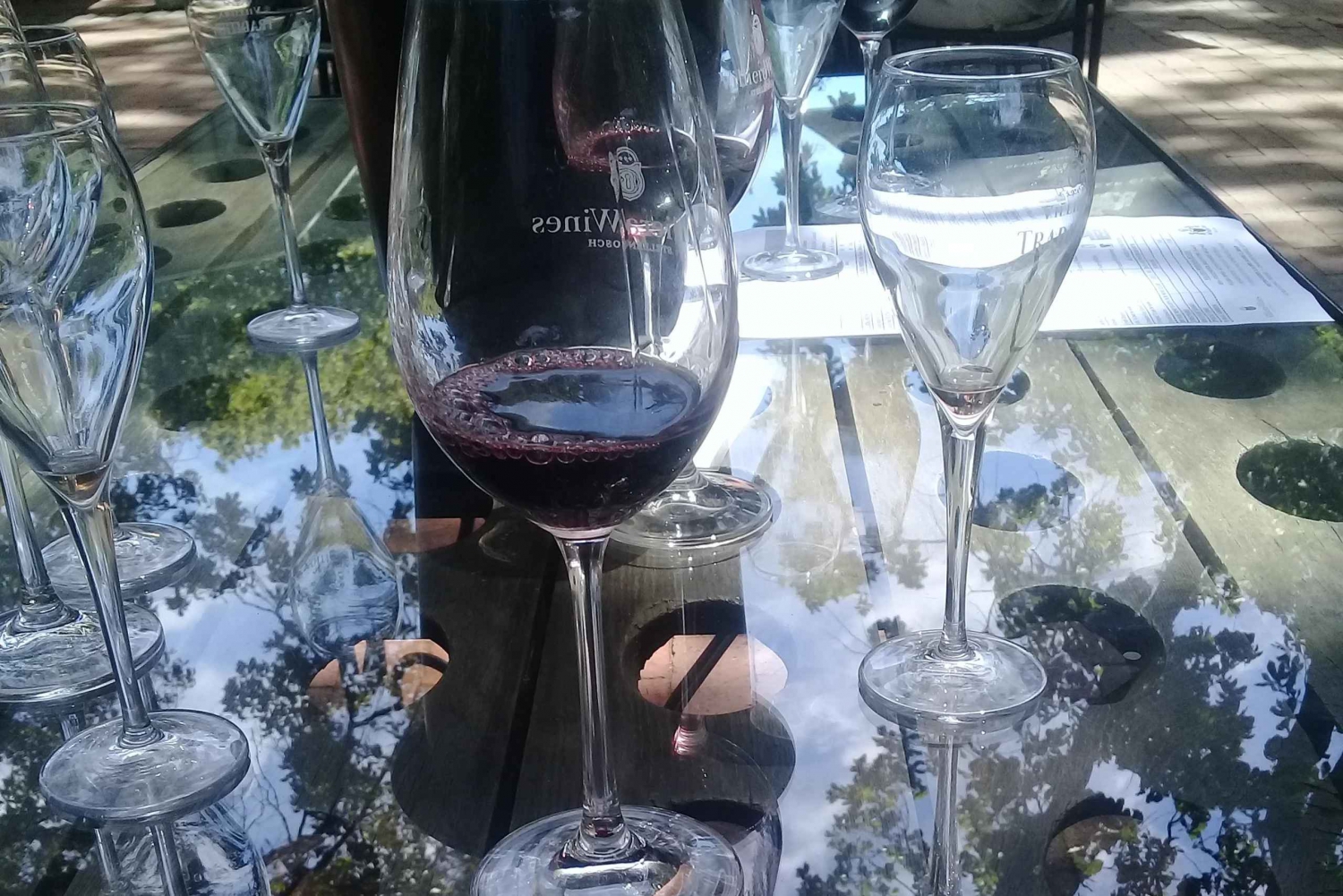 - Sirotez quatre verres de vin au domaine viticole Villiera à Stellenbosch.