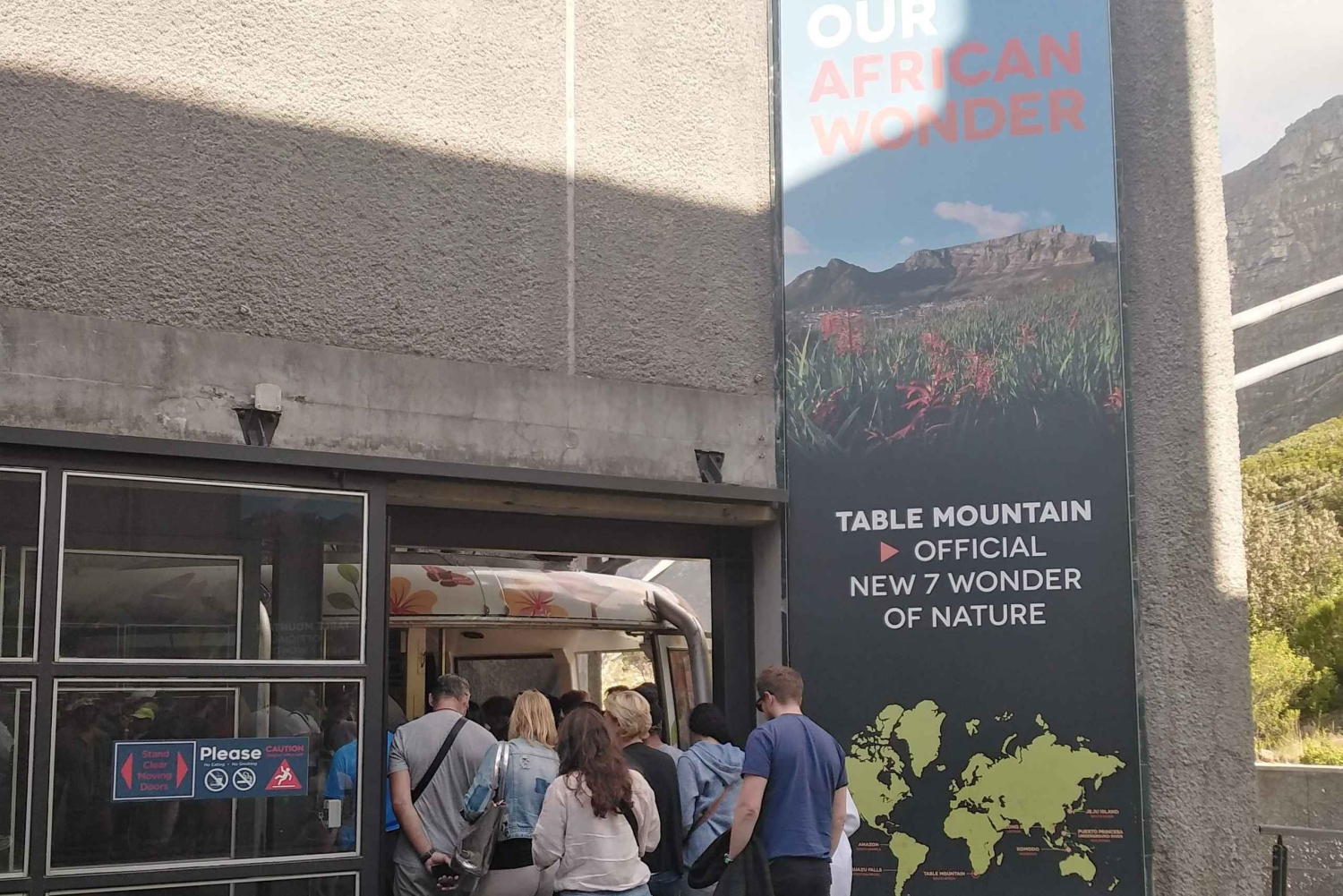 Gli ospiti vengono prelevati dall'hotel a un orario specifico e trasportati alla stazione aerea inferiore, dove la guida li accompagnerà durante l'intero percorso, saltando la coda se possibile. Dopo questa attività, la guida li riporterà in hotel o al loro prossimo punto di arrivo nella città di Città del Capo.