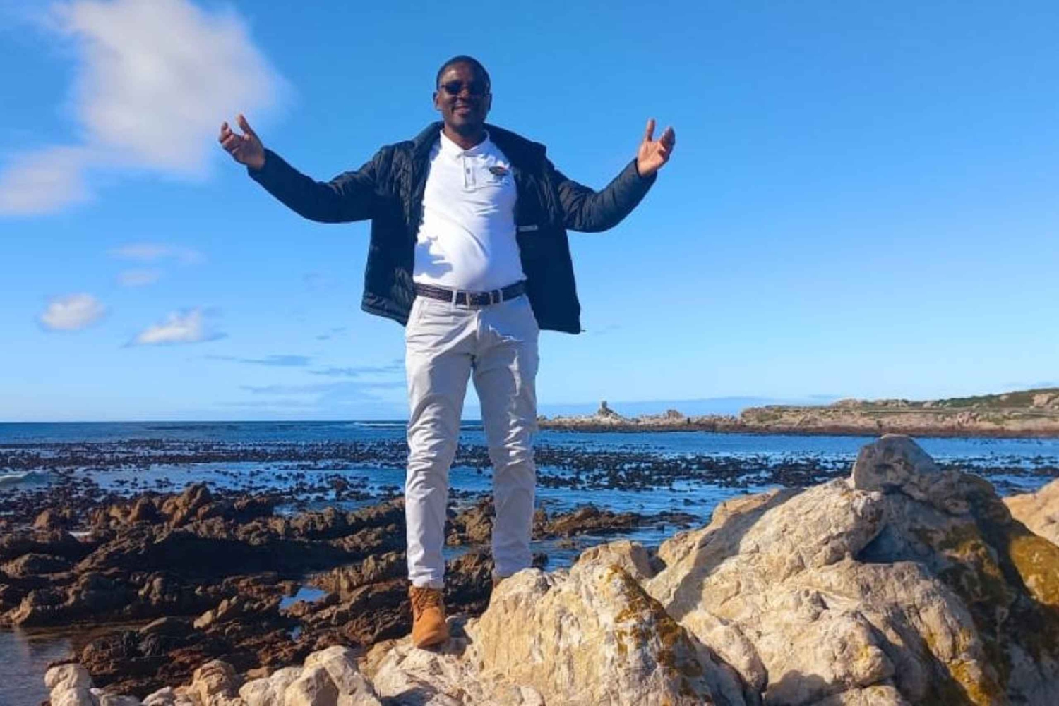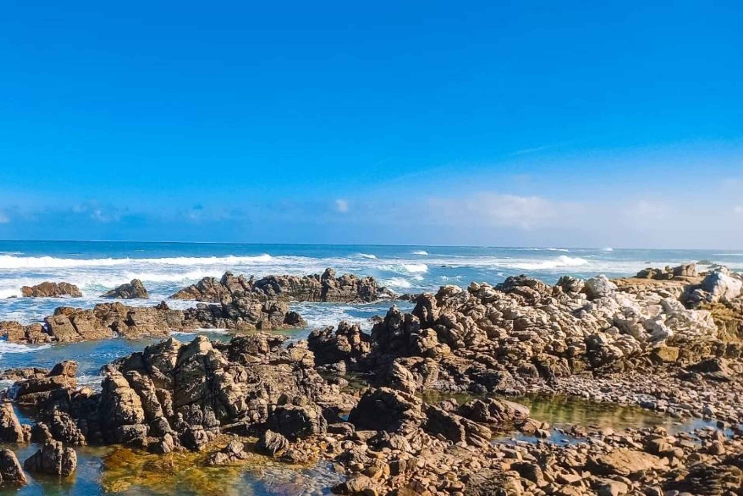 アガラス岬の 1 日プライベート ツアーでは、ケープタウンからアガラス岬への 1 日プライベート ツアーで、2 つの海が出会う場所を見学する一生に一度の機会をお楽しみいただけます。