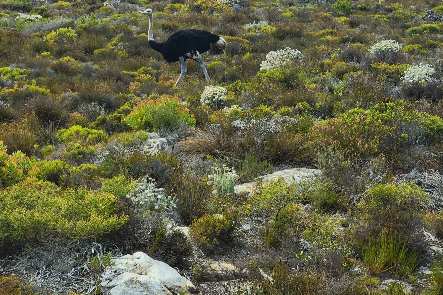 Podczas dalszej eksploracji udaj się przez Rezerwat Przyrody Cape Point, gdzie możesz docenić jego bujną florę i wyjątkową dziką przyrodę. Twój przewodnik poprowadzi Cię na krótkie spacery do punktów widokowych oferujących panoramiczne widoki na okoliczne krajobrazy, podkreślając surowe piękno Półwyspu Przylądkowego.