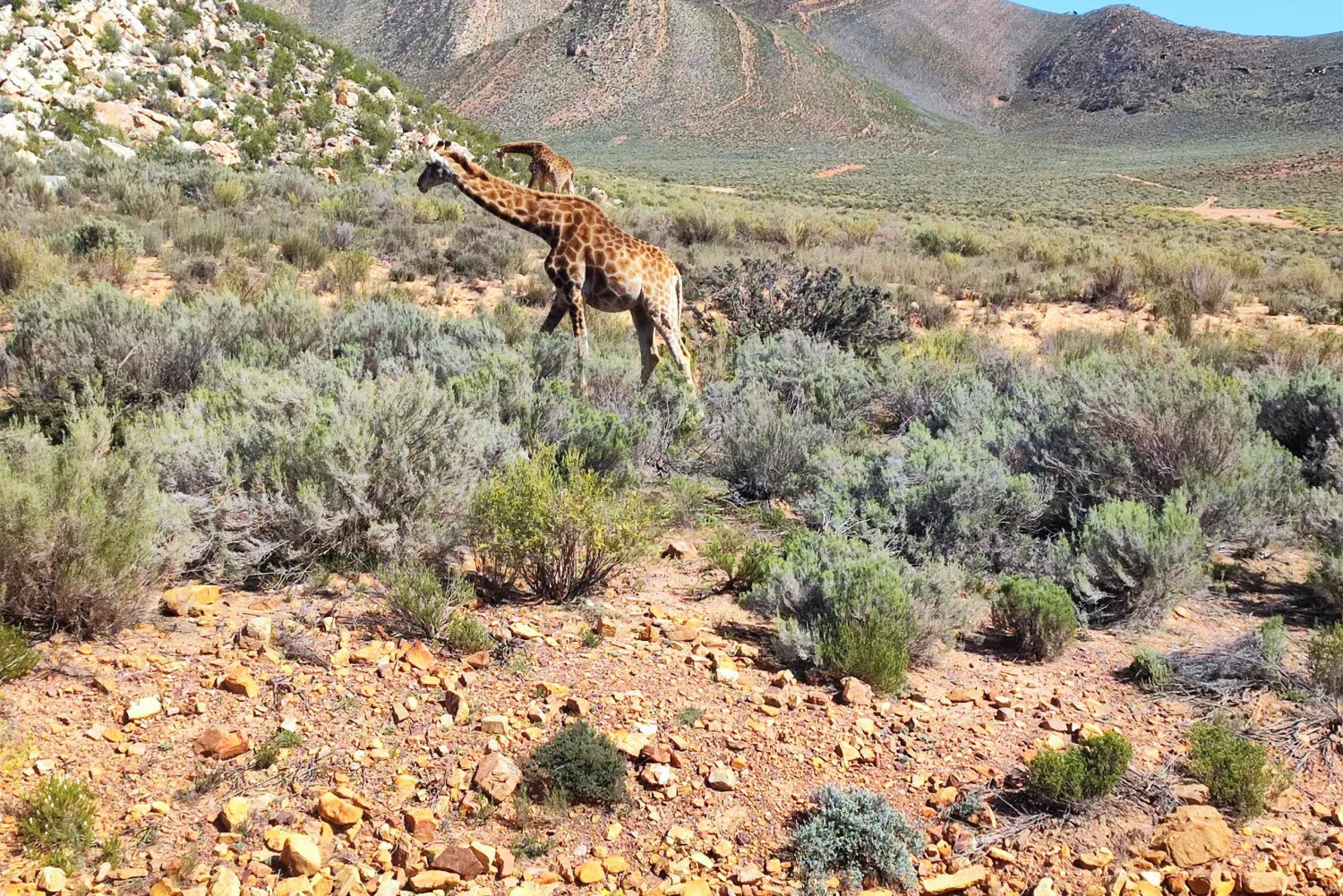 Embarca na tua aventura com uma viagem panorâmica pelo deslumbrante Cabo Ocidental, onde vinhas exuberantes e deslumbrantes passagens de montanha te guiam até à beleza acidentada do deserto de Karoo. Ao chegar a Aquila, serás recebido com uma calorosa hospitalidade antes de partir num safári 4x4 aberto, liderado por guardas florestais experientes.