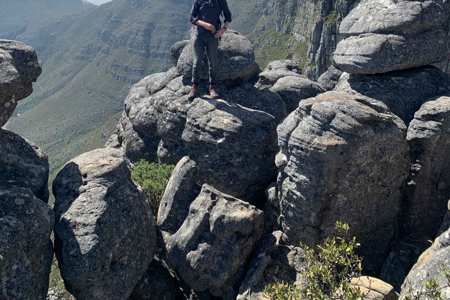 У Индии Венстера есть небольшая схватка (класс B), ничего сложного для того, чтобы справиться с хорошей головой для высоты. начиная с нижней кабельной станции, мы будем использовать путь, следующий под кабелями к контурному пути. после короткого отрезка контурной дорожки мы поднимемся по невысоким каменным ступеням на платформу. затем маршрут следует по оврагу, идущему прямо к контрфорсу Венстера. Здесь у нас есть прекрасная возможность сфотографироваться с настоящим Венстером (окном), выходящим на ущелье Индии. вскоре после окна мы доберемся до легких участков скремблирования, которые наши хорошо обученные гиды могут научить вас, если потребуется дополнительная поддержка. Мы закончим маршрут, следуя от уступа фонтана к задней части Столовой горы, откуда мы достигнем вершины.