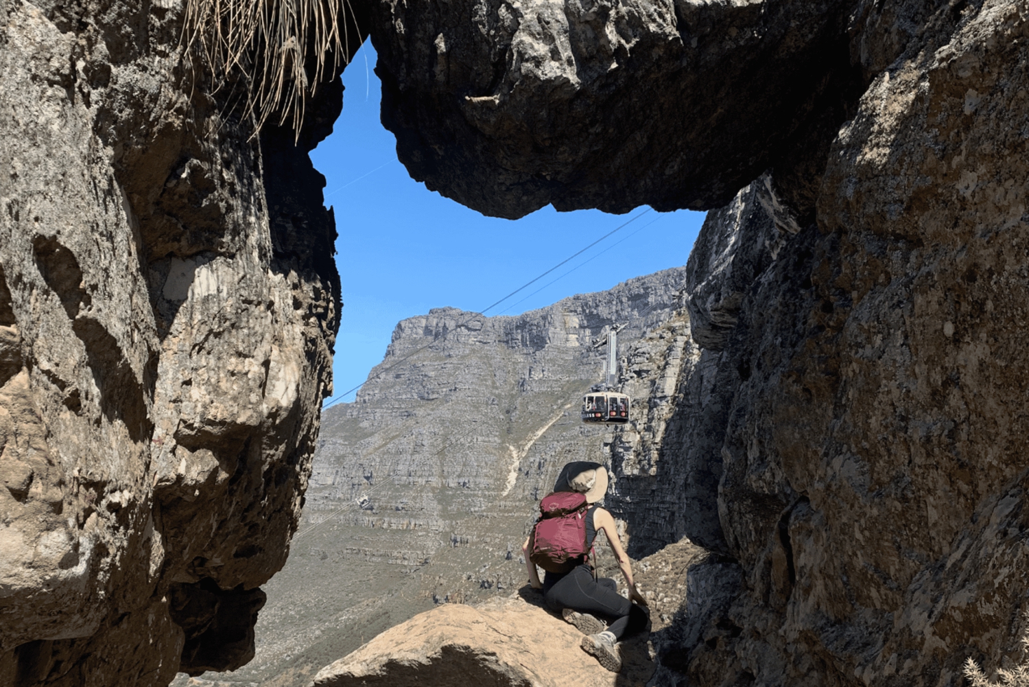 Vädret på Table Mountain kan förändras på ett ögonblick, så ett lätt mellanlager och en regnjacka garanterar att du håller dig torr och varm om vi hamnar mellan molnen.